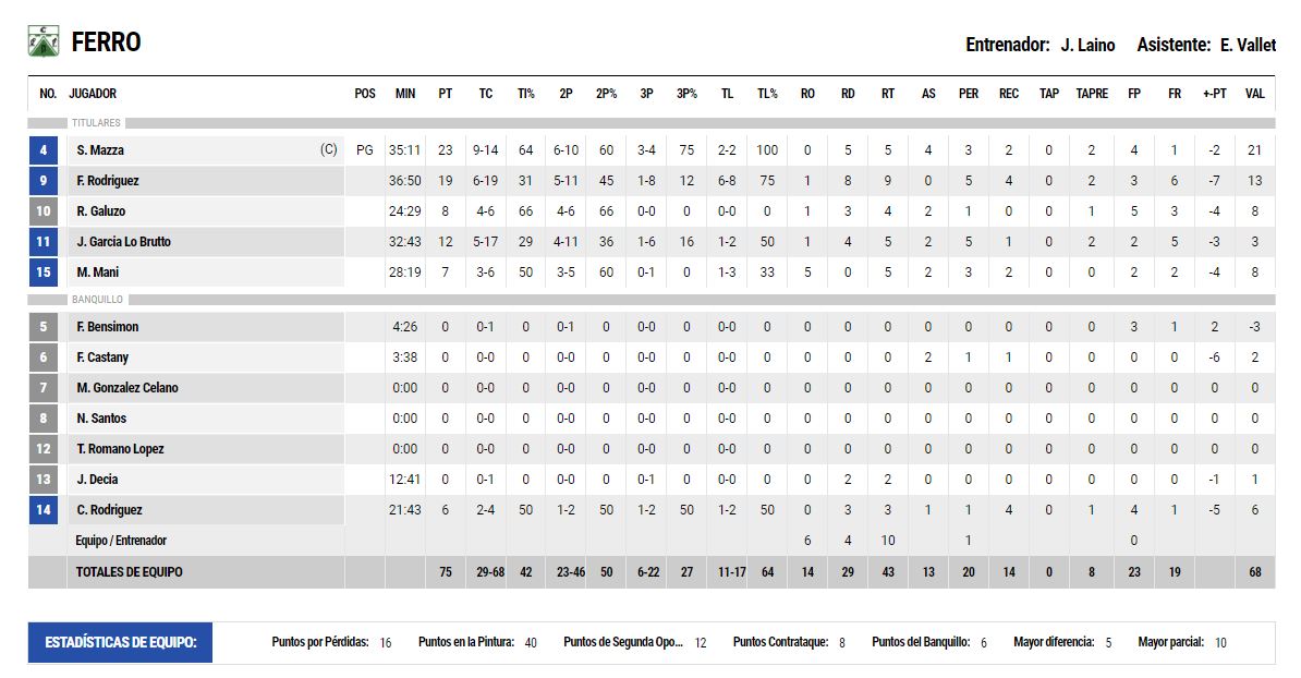 La nueva diferencia conseguida por la visita terminó de definir el partido, porque pese a que Ferro intentó achicar otra vez la brecha, finalmente fue victoria 81-75.