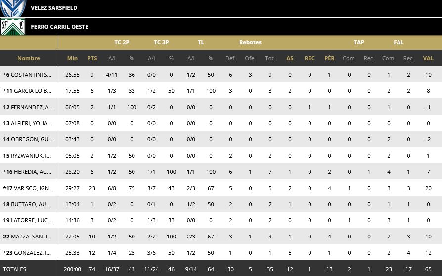 Un 0-6 en los primeros instantes del cuarto período le dieron la posibilidad al local de llevar la diferencia a una máxima de 22 puntos, una ventaja que parecía irremontable para Ferro. Sin embargo, con la entrega que mostró partido a partido, con buenos pasajes de Varisco (5 puntos más en este cuarto) y de Nacho González (8) y con una buena eficacia desde el perímetro (tres triples en el pasaje), los juveniles de Oeste metieron un importante parcial de 18-3 para achicar la diferencia a 7 a falta de 1m45. Pero fue ahí cuando Vélez se hizo fuerte en su casa y supo cerrar el partido por 85-74.