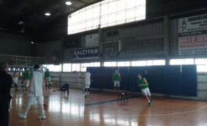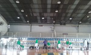 El entrenamiento consistió en dos partes. La primera estuvo a cargo de Patricio Pallares, quién es el encargado de realizar la parte física y luego, los jugadores trabajaron en el rectángulo de juego efectuando trabajos de lanzamientos, fundamentos, ejercicios en parejas y en tríos supervisados por el técnico Castiñeira y sus asistentes.