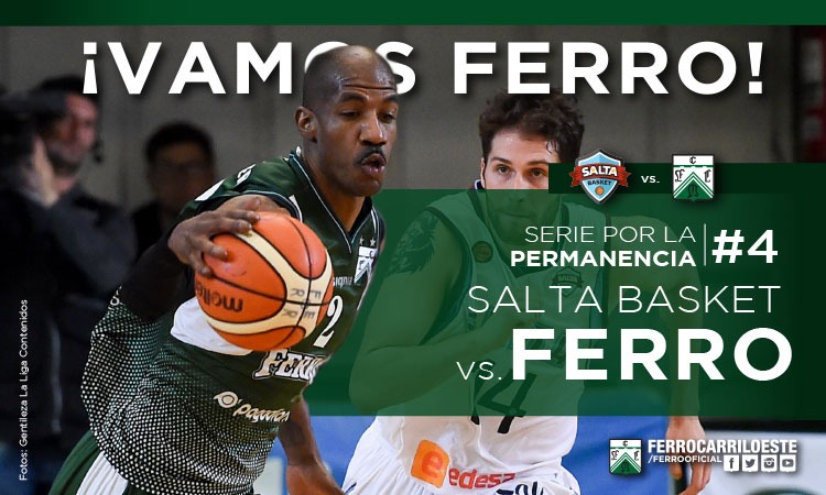 Este viernes, Ferro jugará ante Salta Basket en el marco del cuarto partido por la permanencia en la Liga Nacional. La serie está 2-1 para los de Oeste, Ferro ganó los dos partidos en el Etchart y cayó hace dos días en Salta 102-95. El encuentro se disputará en el Polideportivo Delmi a partir de las 21.30 horas. Los árbitros del encuentro serán: Fabricio Vito, Alberto Ponzo y Leandro Lezcano.