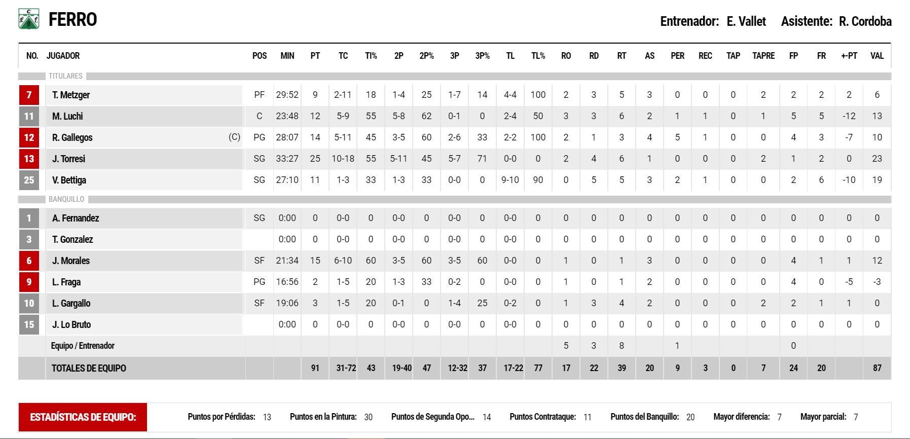 La voluntad, sacrificio y ambición de este equipo contagia. Y esas enormes ganas de ganar se vieron más que nunca en un segundo cuarto donde, más allá de que la temperatura bordeaba los 40 grados en cancha, la intensidad de cada jugador que pisó el parquet del estadio Ciudad de Santiago del Estero no mermó en ningún momento. Un triple de Theo Metzger, otro de Lucas Gargallo y dos de Torresi, el hombre de mano caliente, le dieron una leve ventaja a Ferro. Leve porque, claro está, la jerarquía del rival lo llevó a jugar al máximo para estar a la expectativa. Y con una conversión de Luchi, de muy buen primer tiempo, Oeste terminó arriba 46-42 los primeros 20 minutos. ¿Los números de los dirigidos por Ezequiel Vallet? Un 46% en tiros de campo, con 6/12 en triples, y casi perfecto desde la línea de libres, con 10/11 convertidos.