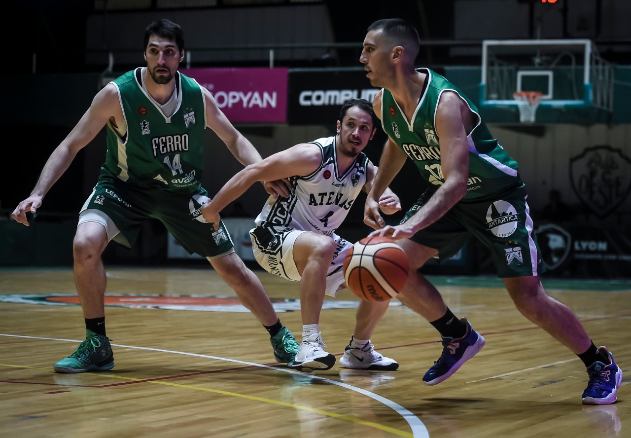 Justamente con dos libres de Gallegos, Ferro acortó la ventaja a tres a falta de 1m28 para el final del primer tiempo, pero un buen cierre de Atenas, con cuatro puntos de Cantón, dejó a la visita seis arriba de cara a la segunda parte.