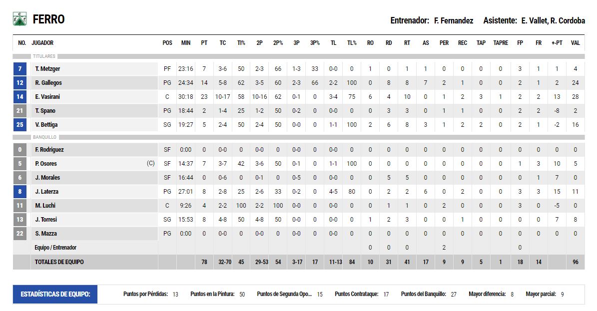 Aunque Ferro, nuevamente construyendo desde una defensa prácticamente impenetrable, con un Nacho Laterza siempre aguerrido, volvió a meter un 7-0 y cerró así su sexta victoria en la temporada, la cuarta de manera consecutiva y la tercera en casa, donde está invicto en lo que va de la Liga Nacional.