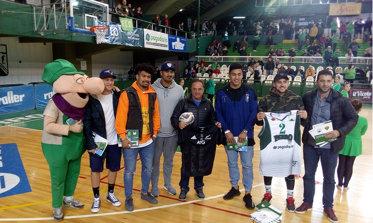 En la noche de ayer, parte de los legendarios All Blacks concurrieron ayer al Héctor Etchart para presenciar el partido entre Ferro y Obras Basket por el Súper 20.