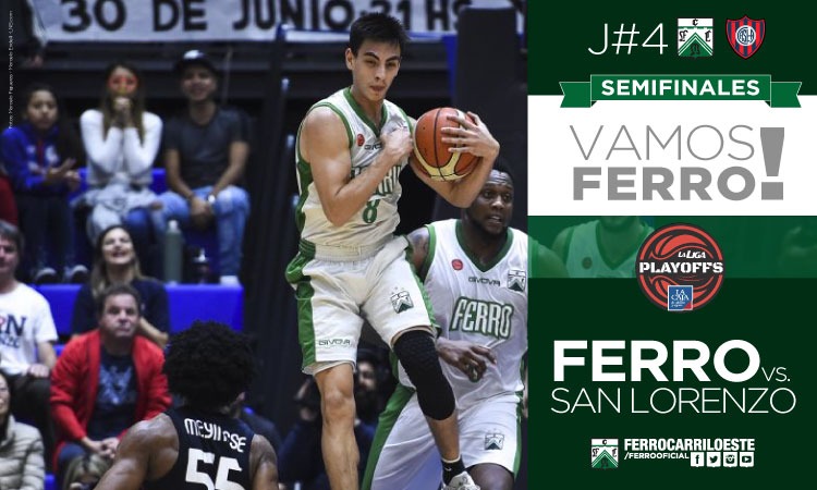 Ferro jugará el cuarto partido de la serie de semifinales de La Liga Nacional este domingo a las 21 ante San Lorenzo. Tras el triunfo 68-67 el viernes por la noche, los de Laginestra buscarán igualar la serie, televisa DirecTV. Los árbitros serán Pablo Estevez, Leandro Lezcano y Sebastián Moncloba.