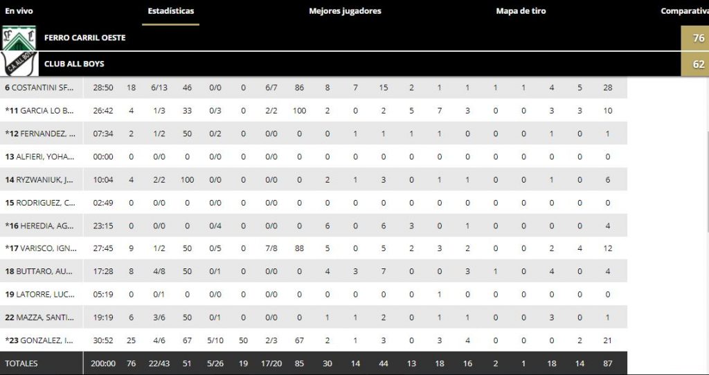 También fue para destacar la actuación de Costantini, que cerró un doble-doble de 18 puntos y 15 rebotes. Además, sumó dos asistencias.