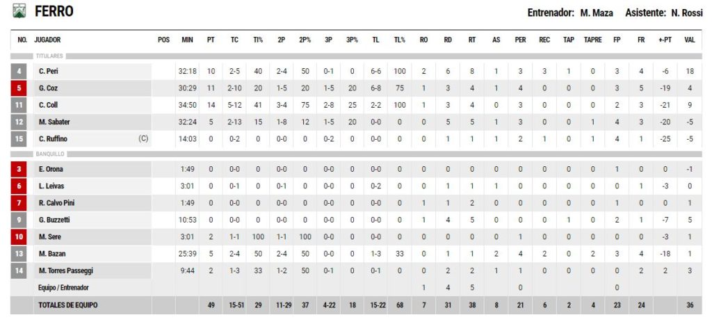 Con este resultado, Ferro, que está dando sus primeros pasos en la Liga Femenina de Básquet, ya no tiene chances de ingresar a los Playoffs. Por lo que este lunes, a las 14, enfrentará a Quimsa en lo que será su último partido en la competencia.