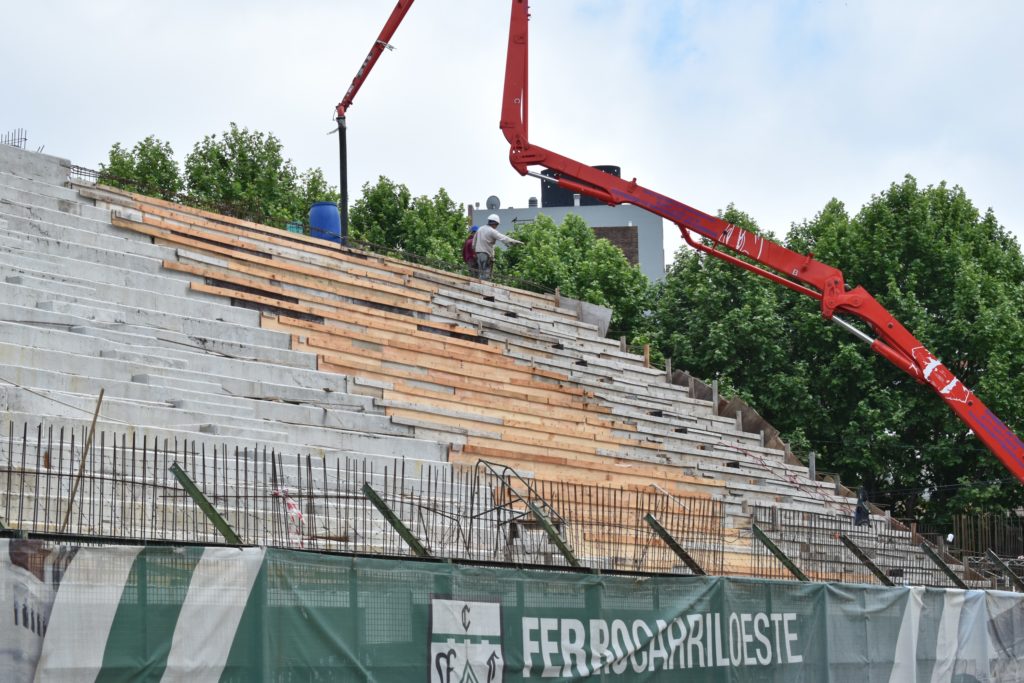 La obra, encabezada por el Estudio Kras de arquitectura, continúa avanzado a toda marcha. Luego de haber finalizado el llenado de hormigón del séptimo módulo de la parte baja, comenzaron los trabajos en los primeros dos módulos de la bandeja alta -o segunda bandeja- de la Tribuna Oeste del Club Ferro Carril Oeste.