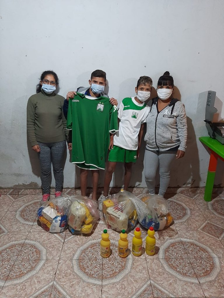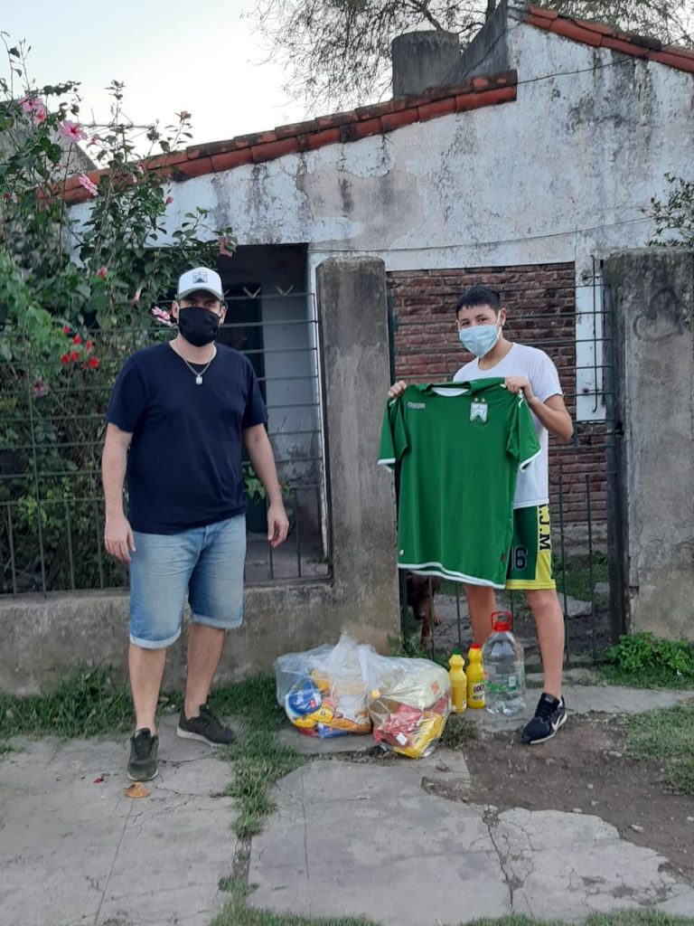 En representación del plantel profesional de fútbol, uno de los primeros en sumarse a la campaña solidaria fue Walter Busse, quien además le acercó los productos a una de las familias que forman parte del Club.