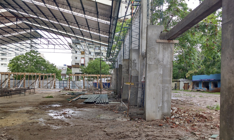 En el terreno que se encuentra ubicado entre el Estadio Multideportivo y el estacionamiento ya se colocó la estructura principal del techo del nuevo gimnasio. Ahora continuarán con el acondicionamiento del suelo para finalizar la edificación.