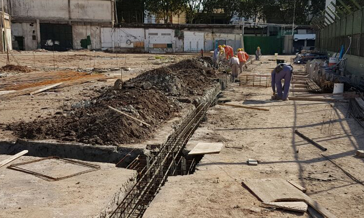 La zona en la que se está construyendo la cabecera local, ubicada en el sector de la antigua popular, fue acondicionada satisfactoriamente. Luego se hicieron los trabajos de excavación correspondientes para el posterior levantamiento de la estructura principal y ya fue colocado el hormigón correspondiente en el proceso de llenado de los pilotes. Ahora comenzó la etapa de colocación de los tensores y de las vigas de fundación.