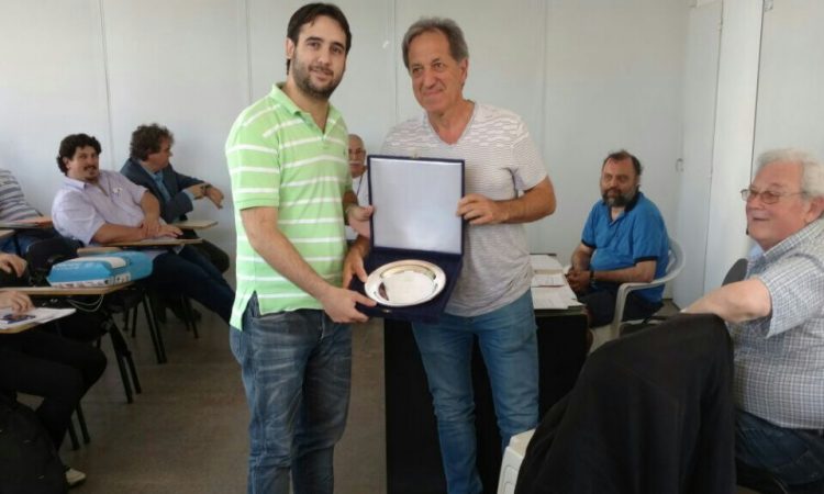Para finalizar la Asamblea, el presidente de la subcomisión de Ajedrez del club, Federico Messina, entregó una placa en reconocimiento por el gran trabajo al presidente de la FADA.