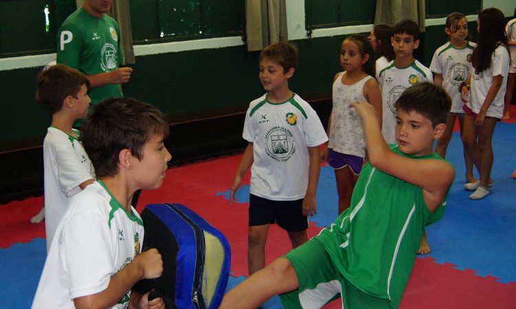 Dichos talleres están a cargo durante enero con el Profesor Alejandro Tiratel 3º dan, quien ayudado por cinturones negros de la institución, les enseña a chicos de entre 6 a 12 años los fundamentos básicos del Arte Marcial. Los niños aprendieron las bases de la actividad: tecnicas de manos y pies sobre elementos blandos y frente a frente con un compañero.
