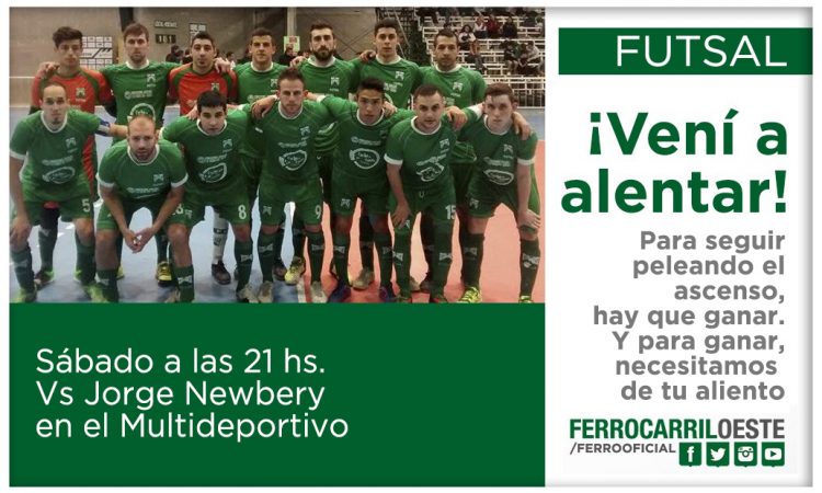 Los chicos del futsal de Ferro jugarán mañana, desde las 21, ante el puntero y uno de los rivales más difíciles del torneo: Jorge Newbery. El encuentro será en Caballito, en el Estadio Multideportivo, y Oeste necesita el aliento de todos. ¡Los esperamos!