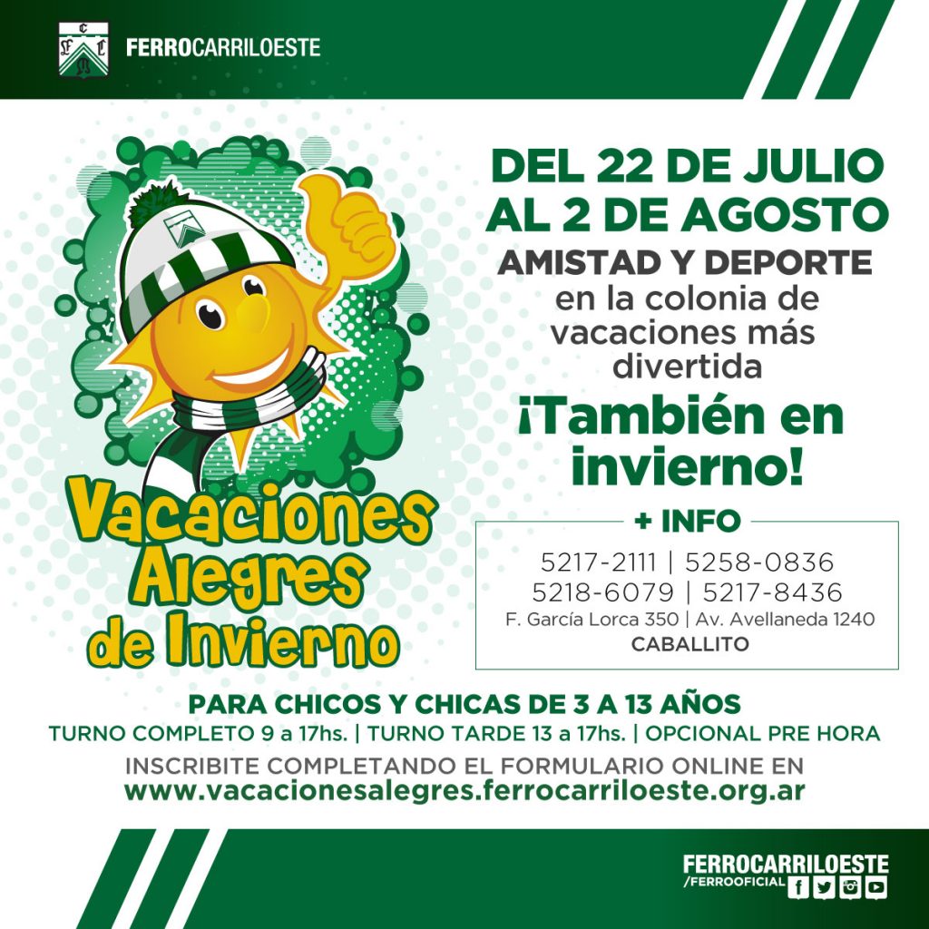 Desde el lunes 10, inició la preventa para una nueva edición de las Vacaciones Alegres de Invierno. Se vienen dos semanas a pura diversión en la colonia del Club Ferro Carril Oeste.