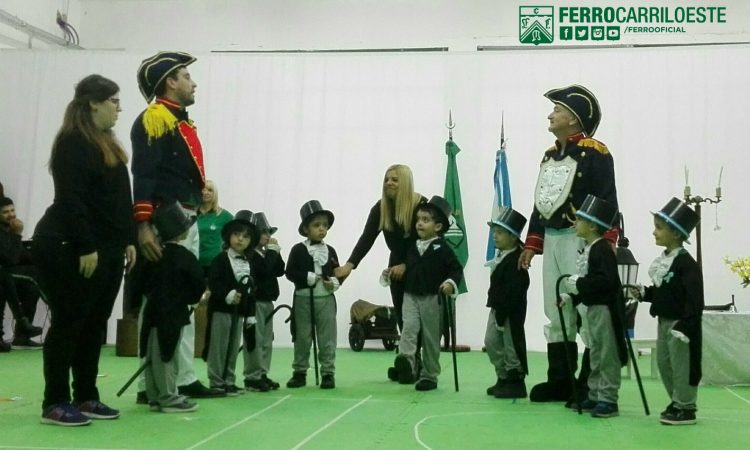 En el SUM del segundo piso de la Sede Social, los niños, profesores y familias de los chicos vivieron una tarde especial, ante la presencia del Presidente de la Institución, Daniel Pandolfi. Allí, luego de entonar las estrofas del himno nacional, los más pequeños recrearon escenas de nuestra historia.