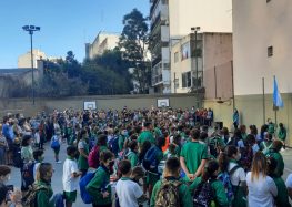 Los padres de los alumnos confeccionaron una bandera que abrazó toda la manzana del club, mientras que un camión con altavoz, música y palabras alusivas a la ocasión encabezó la marcha. El recorrido comenzó en la puerta del jardín y luego todos los asistentes ingresaron al Estadio Profesional para realizar la suelta de globos, que llevaban un deseo escrito por cada familia. Por último, el acto se trasladó al hall de entrada al campo de juego, donde entonaron las estrofas del himno nacional y disfrutaron de una actividad folclórica.