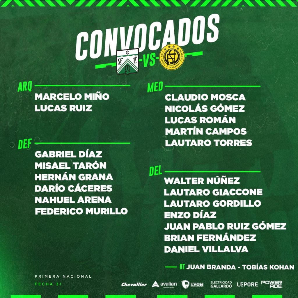 El plantel tuvo su último entrenamiento este viernes por la mañana y, una vez finalizado, los entrenadores Juan Branda y Tobías Kohan confirmaron a los futbolistas convocados para el encuentro.
