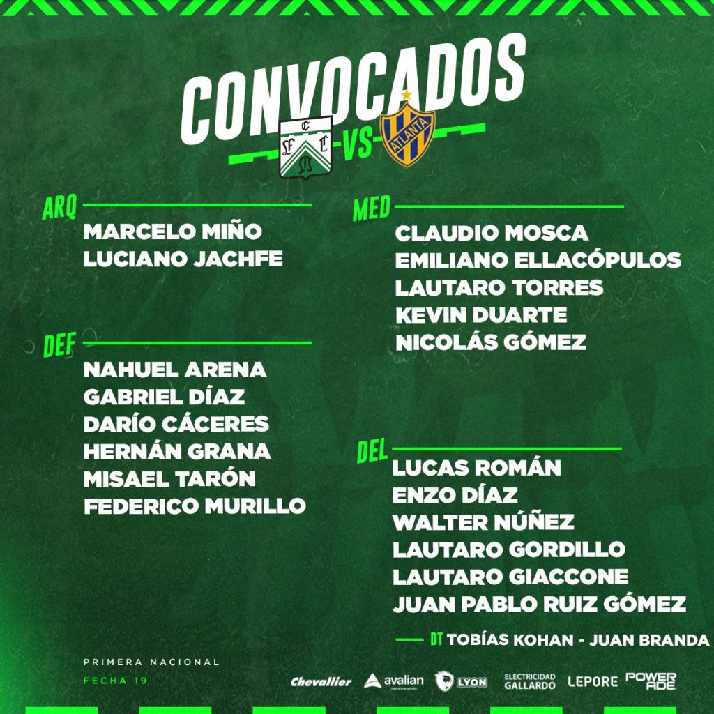 El plantel entrenó en Caballito el lunes por la tarde, donde Juan Branda y Tobías Kohan confirmaron a los futbolistas convocados para el encuentro. Los jugadores que quedaron concentrados, con la primera aparición del flamante refuerzo Kevin Duarte en la lista, son: