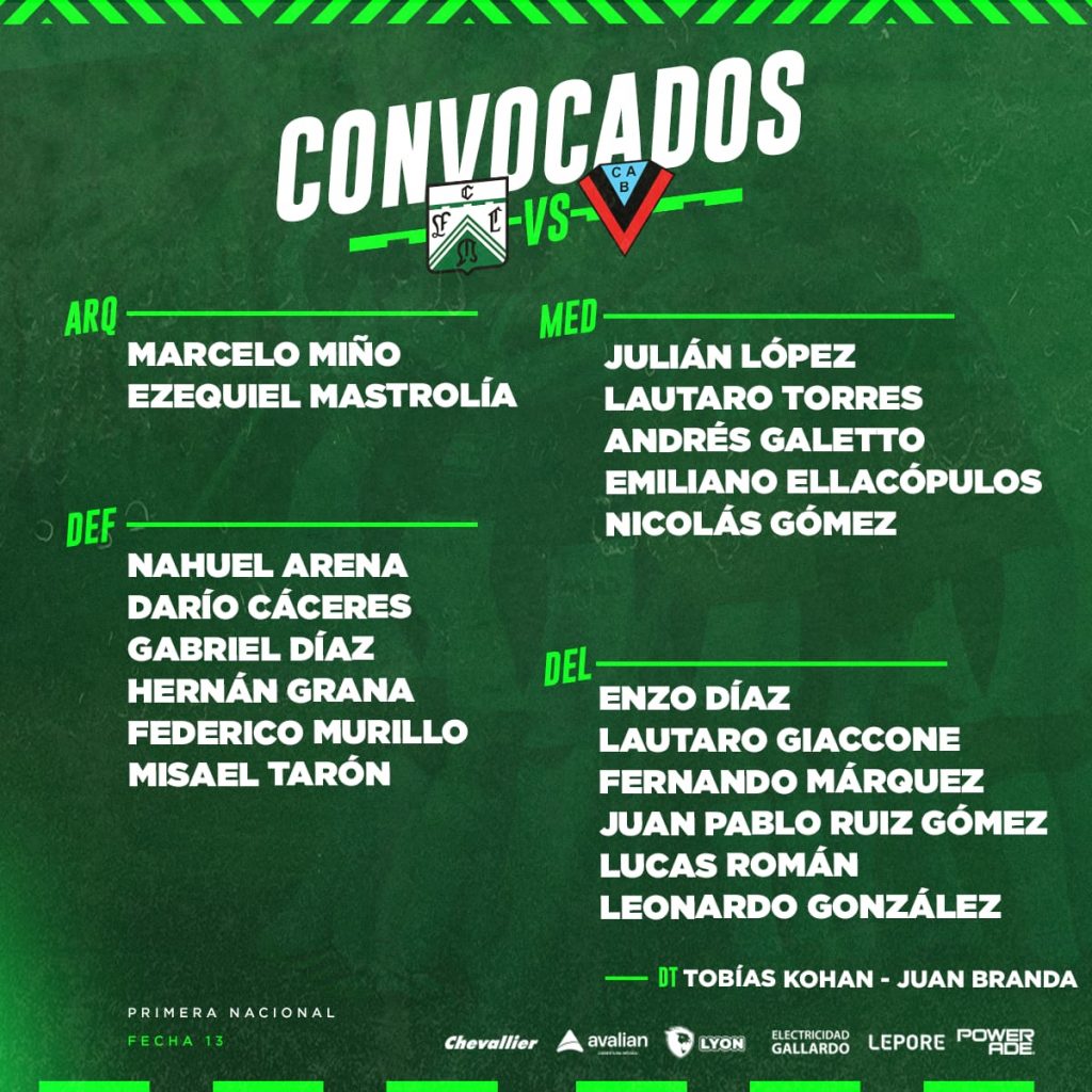 Por la fecha 13 de la Primera Nacional, Ferro recibe a Brown de Adrogué desde las 21.05, con arbitraje de Maximiliano Nicolás Ramírez (2 PG, 2 PE, 1 PP) y televisación de TyC Sports.