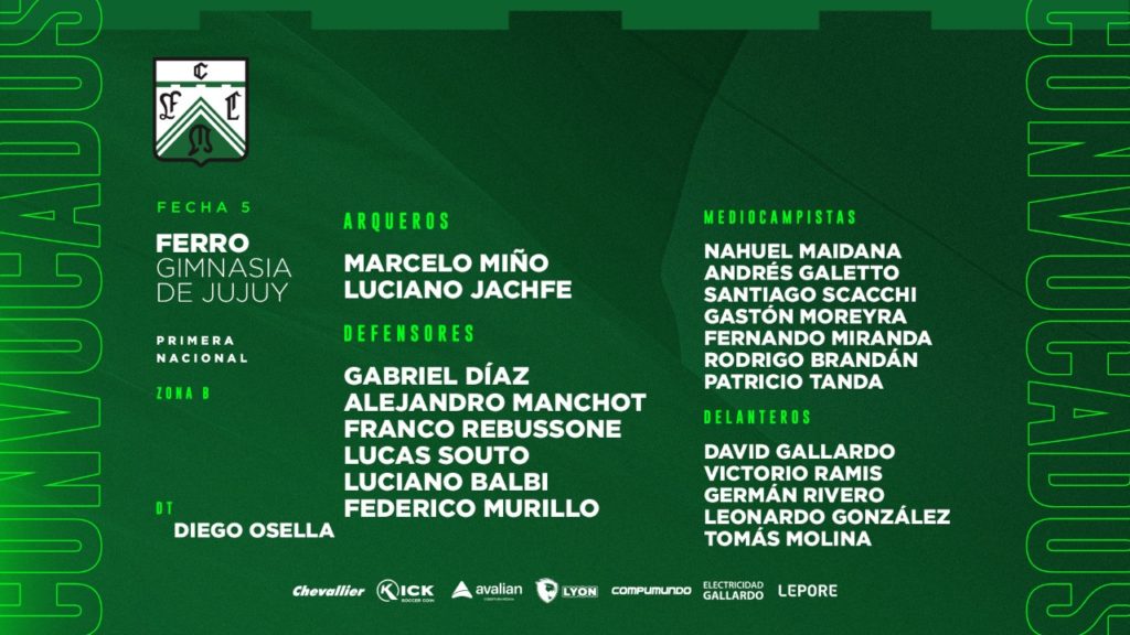 El plantel se entrenó en Caballito este viernes por la mañana y al término de la práctica, el entrenador Diego Osella dio a conocer a los convocados para el duelo contra Gimnasia. Los futbolistas que formarán parte de la delegación son: