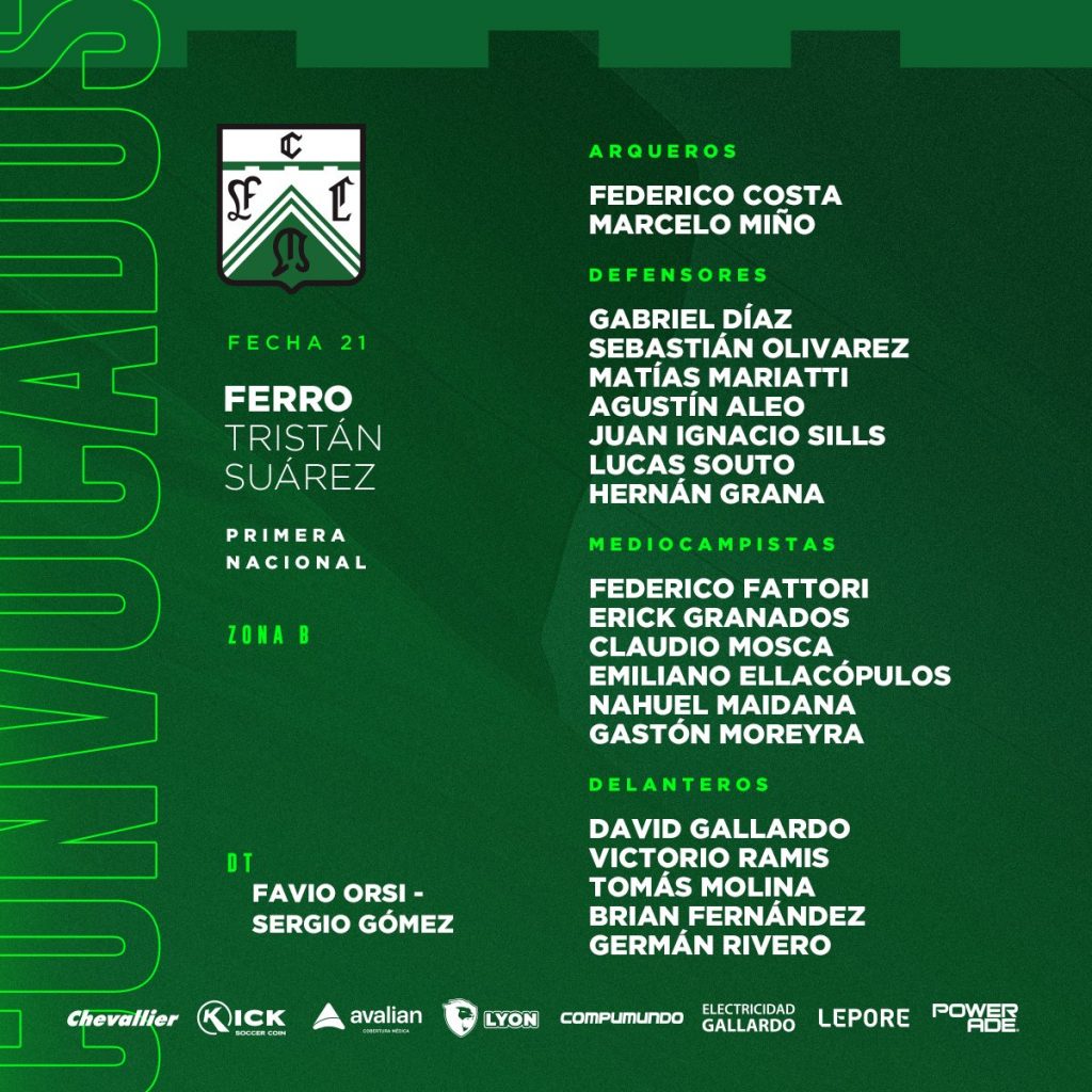Quedaron al margen Misael Tarón y Gonzalo Rodríguez (se recuperan de lesiones musculares), Franco Toloza (expulsado ante All Boys) y Fernando Miranda (acumulación de tarjetas amarillas).