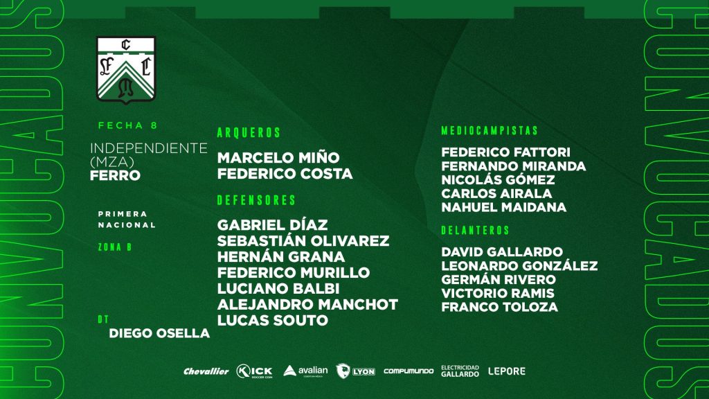 El plantel que conduce Diego Osella viajó a la provincia cuyana este sábado por la tarde tras entrenarse en Caballito y concentrará en el hotel a la espera del partido ante la Lepra. Los futbolistas que formarán parte de la delegación -con las ausencias obligadas de Brian Fernández por Covid-19 y Juan Ignacio Sills y Tomás Molina en rehabilitación de sus lesiones-, son: