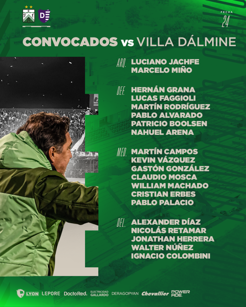 De cara a este encuentro, el entrenador contará con los regresos de Nahuel Arena y Kevin Vazquez, tras cumplir la fecha de suspensión, y de Martín Campos, recuperado de un dolor abdominal. En tanto, Juan Fernandes Pinto, Felipe Di Lena y Daniel Villalva quedaron afuera de la nómina final. De esta manera, los futbolistas citados son: