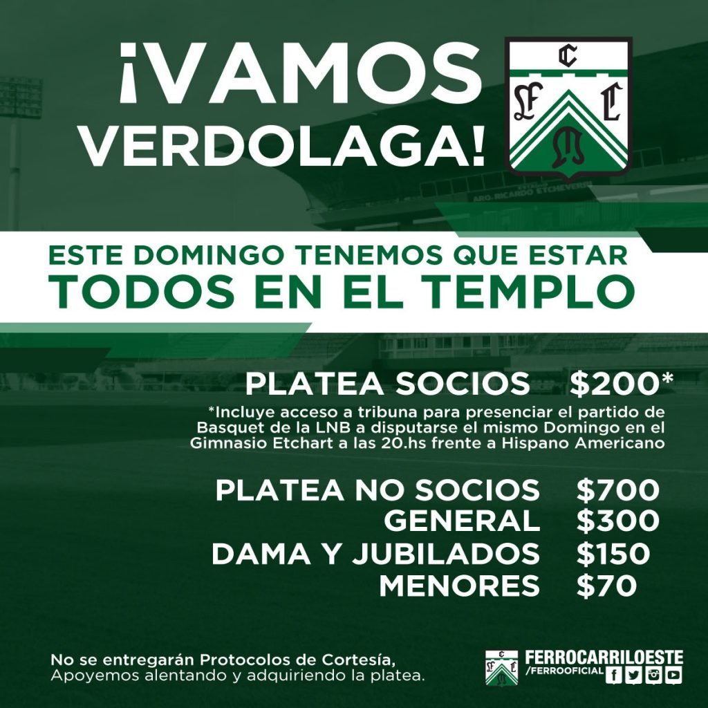 Se viene la recta final del torneo y tenemos que alentar todos juntos a Ferro, por eso hay promociones para que accedas a la cancha y apoyes al verdolaga