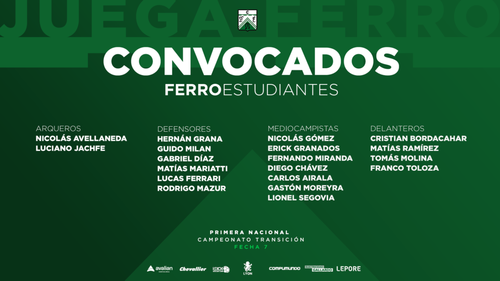 El domingo 10 de enero, desde las 17.10 y con la televisación de TyC Sports, Ferro Carril Oeste recibirá al Club Atlético Estudiantes por la séptima y última fecha de la Zona Campeonato de la Primera Nacional. El árbitro del encuentro será Pablo Dóvalo.