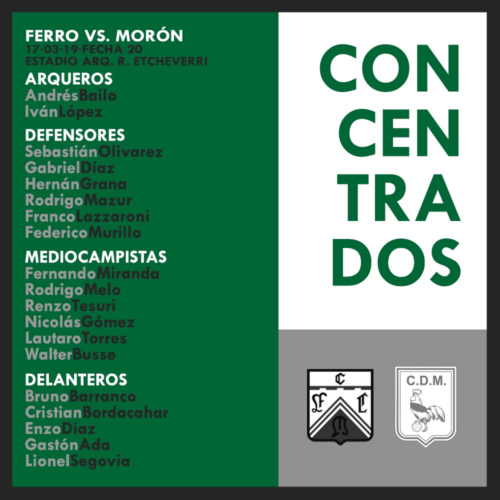 El plantel profesional de fútbol de Ferro se entrenó en Caballito y tras la práctica el técnico Jorge Cordon definió la lista de jugadores que enfrentarán a Deportivo Morón, el domingo como local desde las 18.