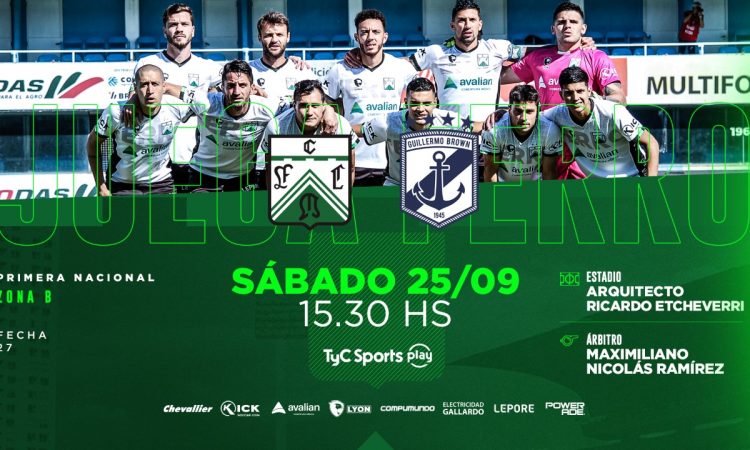 Por la fecha 27 de la Primera Nacional, Oeste recibirá a Guillermo Brown de Puerto Madryn desde las 15.30, con arbitraje de Maximiliano Ramírez (1 PE, 1 PP) y con transmisión por streaming de TyC Sports Play.