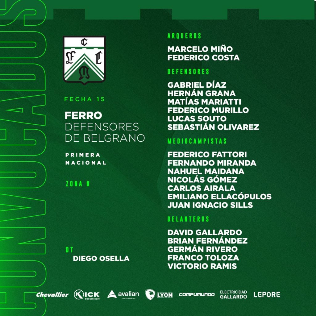 El plantel se entrenó en el Estadio este sábado por la tarde y Diego Osella confirmó a los convocados para el encuentro. Los futbolistas que formarán parte de la delegación son: