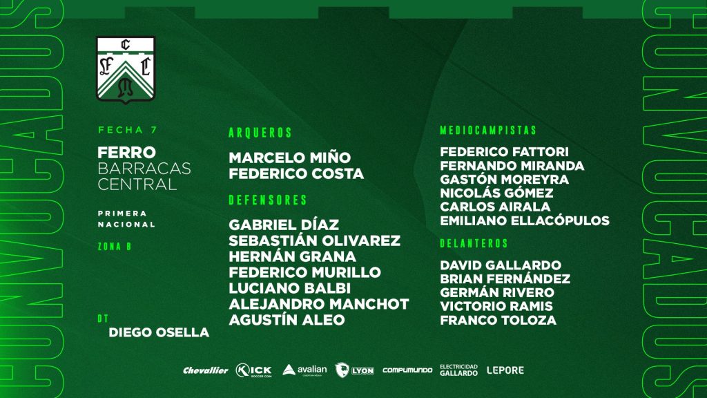 El plantel se entrenó en Escobar este viernes por la mañana y al término de la práctica, el entrenador Diego Osella dio a conocer los citados para el duelo ante los barraqueños. Los futbolistas que formarán parte de la delegación son: