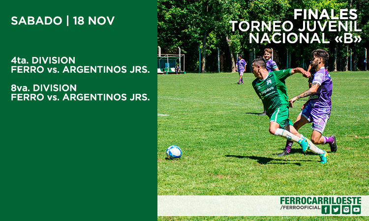 El sábado 18 de noviembre, a partir de las 9 y en el predio Tita Mattiussi de Racing, se jugarán las finales del Torneo Juvenil Nacional B en simultáneo. De las seis categorías de Ferro, coordinadas por Jorge Cordon, dos obtuvieron la clasificación y jugarán el partido definitorio.