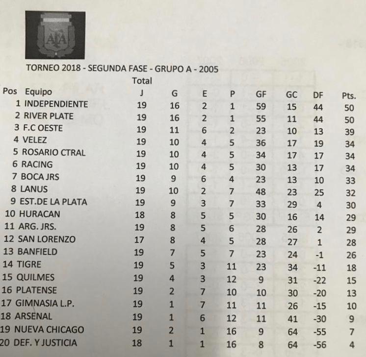 Con 39 puntos, producto de once victorias, seis empates y dos derrotas, Ferro terminó tercero en la tabla, debajo de Independiente y River.