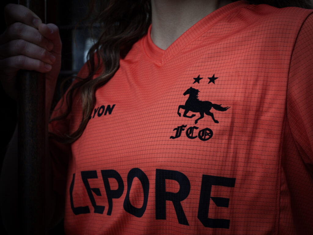 Como escudo se destaca el uso de la ilustración del caballito, emblema del barrio, aplicado en flock al igual que el logo de Lyon, ambos en color negro.