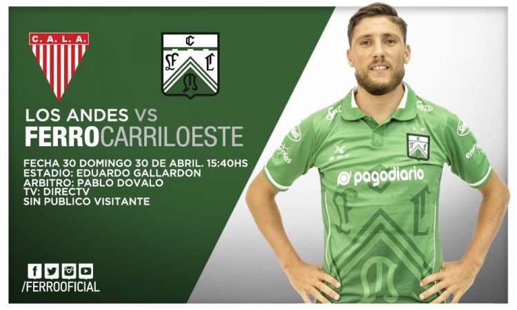 Ferro visitará el domingo 30 de abril, desde las 15.40, a Los Andes en el estadio Eduardo Gallardon por la fecha 30 de la Primera B Nacional. El partido, que tendrá a Pablo Dóvalo como árbitro principal, será televisado por DirecTV.