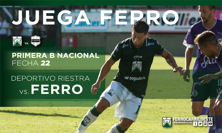 Ferro visitará el viernes 6 de abril, a partir de las 15.30, a Deportivo Riestra en el Estadio Guillermo Laza por la fecha 22 de la Primera B Nacional. El partido, que no será televisado, contará con el arbitraje de Gastón Suárez.