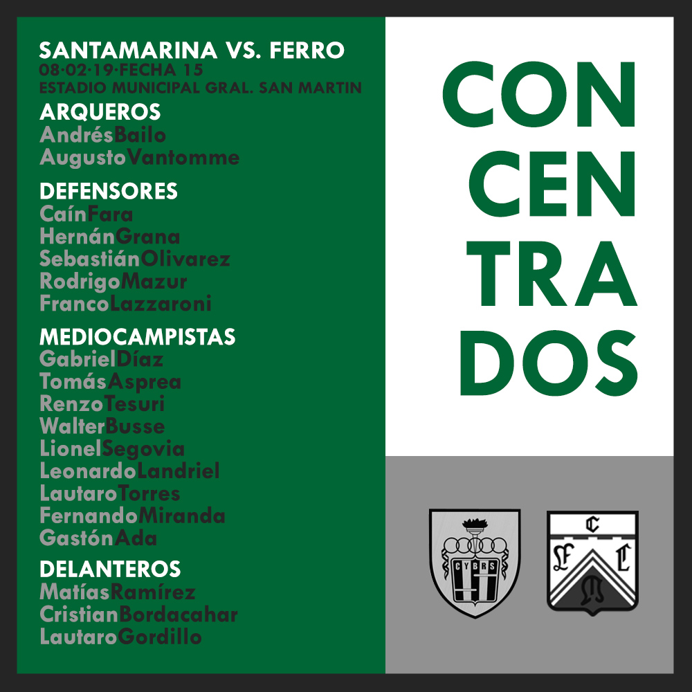 Ferro visitará el viernes a Santamarina, en Tandil desde las 20.30, en el marco de la fecha 15 de la Primera B Nacional con el arbitraje de Sebastián Ranciglio. Este encuentro no contará con transmisión televisiva.