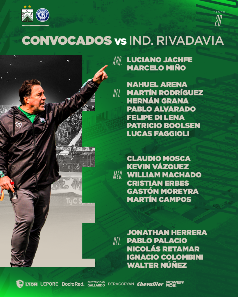 Con el regreso de Gastón Moreyra entre los concentrados tras cuatro fechas de ausencia por lesión y la salida de Gastón González, los futbolistas citados son: