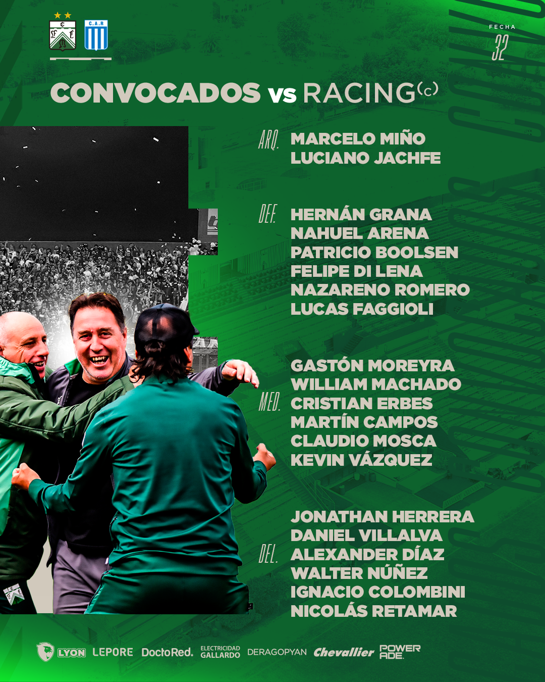 En tanto, contará con el regreso de Gastón Moreyra después de dos lesiones que lo marginaron más de dos meses de las canchas, así como también volverán a la nómina Felipe Di Lena y Nazareno Romero. De esta forma, los futbolistas citados son: