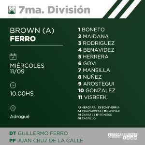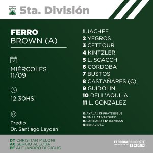 Las divisiones juveniles de Ferro enfrentaron a sus pares de Brown de Adrogué por la tercera fecha, que había quedado pendiente en el comienzo del torneo. Las categorías mayores (cuarta, quinta y sexta) jugaron en el predio Dr. Santiago Leyden (Pontevedra), mientras que las menores (séptima, octava y novena) lo hicieron en Adrogué.