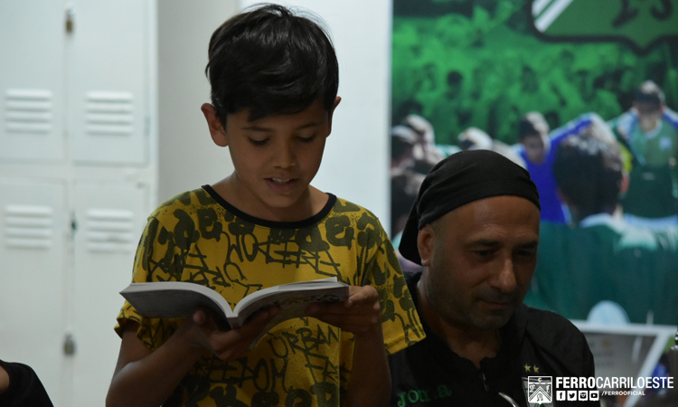 #Fútbol ?⚽ Jeremías (foto 1), Erick (2) y Martín (3), de la pensión de #Ferro, leen el cuento escrito por Adrián Bianchi (@DePoetasyLocos) en el segundo libro de @LibroPelota. pic.twitter.com/Ya6fr7t5KI