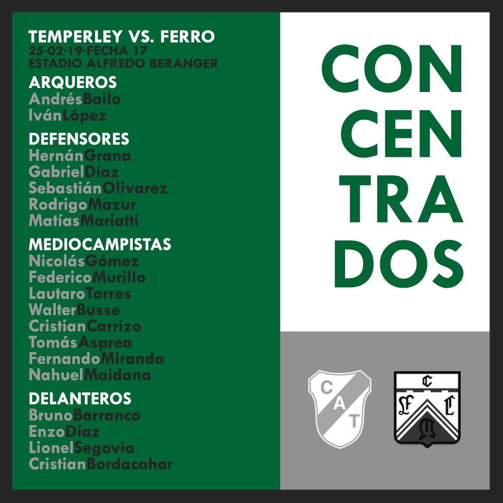 Ferro enfrentará a Temperley, el lunes desde las 21 como visitante, en el marco de la fecha 17 de la Primera B Nacional. El encuentro, que no contará con transmisión televisiva ni público visitante, será dirigido por Pablo Dóvalo.