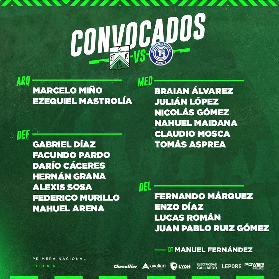 El plantel entrenó el domingo por la tarde en el Estadio y, tras la práctica, Manuel Fernández confirmó a los futbolistas convocados para el encuentro. Con las bajas de Andrés Ayala y Franco Godoy (ambos en recuperación de distintos desgarros musculares) los jugadores que quedaron concentrados son: