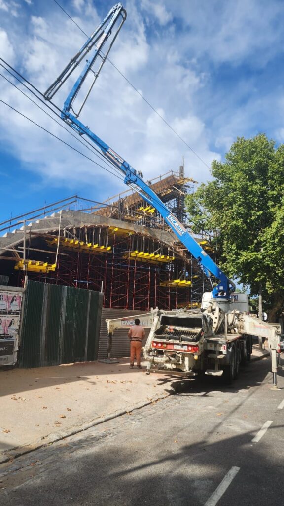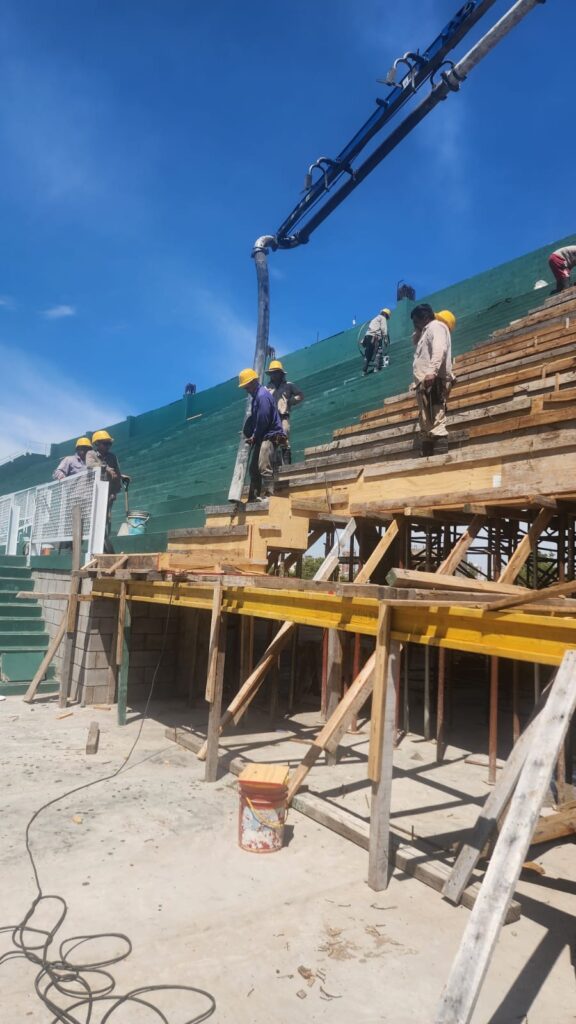 En el día de ayer se continúo llenando de hormigón la tribuna del Estadio Arq. Ricardo Etcheverri.