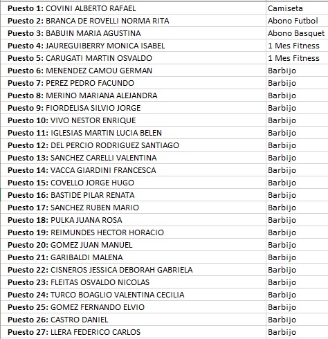 | Puesto 3: POLOSECKI LUCAS MIGUEL | Abono Basquet |