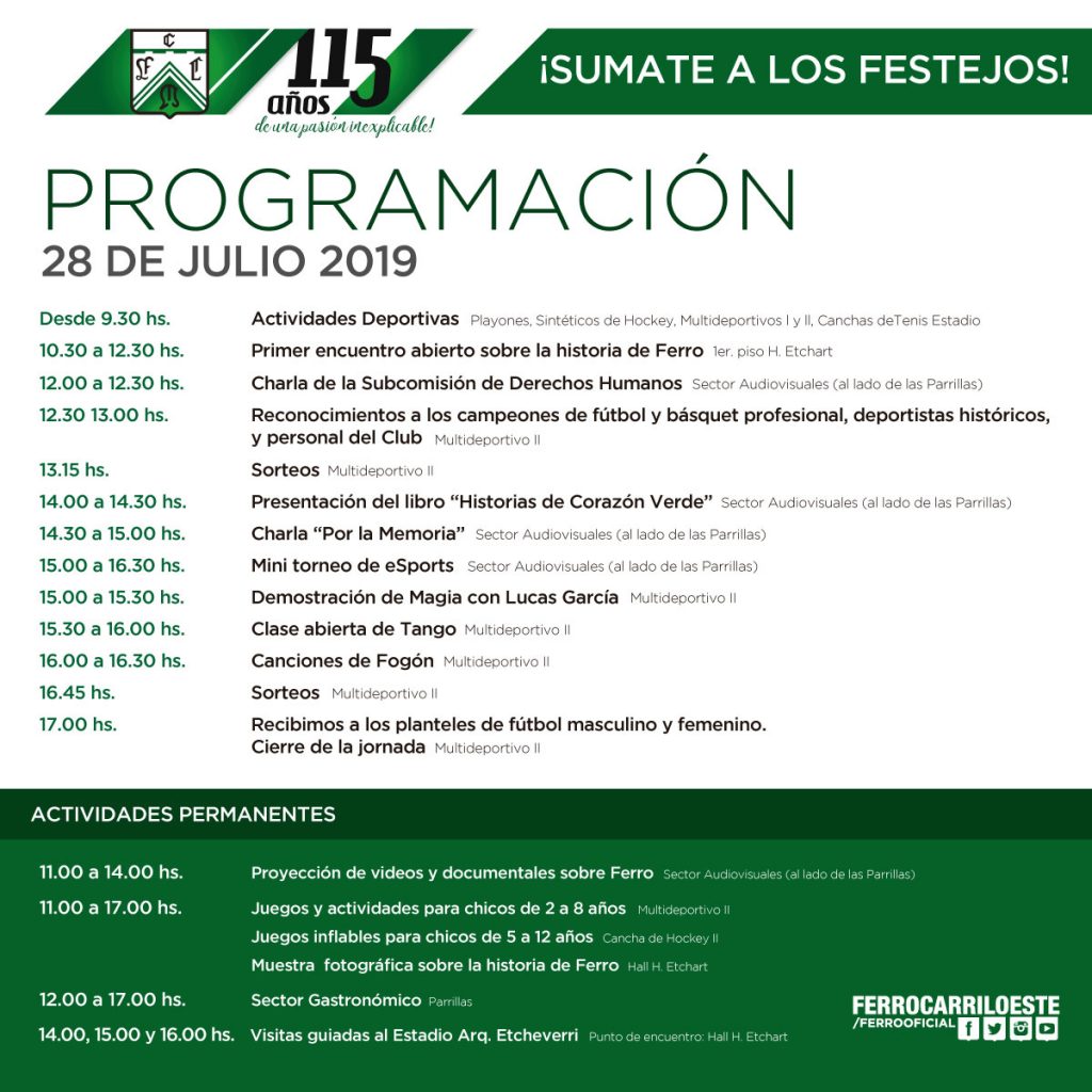 ¡Festejemos juntos nuestro cumple! El domingo 28, de 11 a 17, en el Multideportivo 2, la familia Verdolaga se reunirá para celebrar el aniversario 115 del club, con entrada libre y gratuita, y muchas sorpresas.