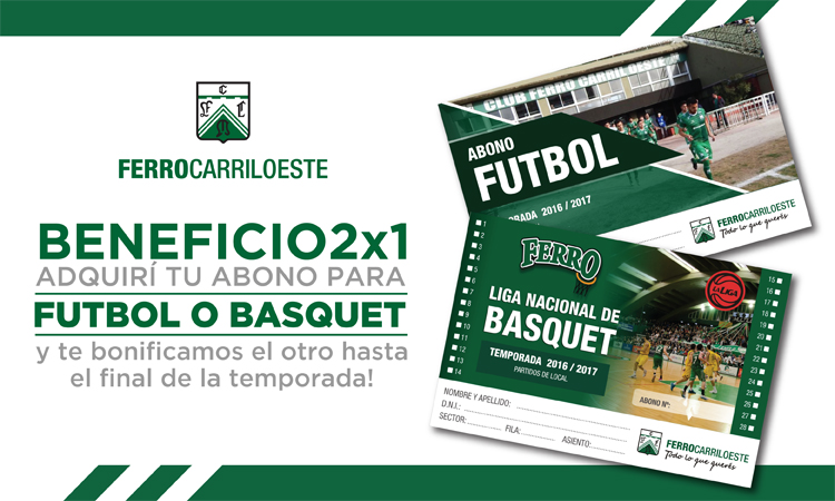 Con la compra de un bono para fútbol o básquet a $4200 (tres cuotas sin interés), te bonificamos el otro hasta el final de la temporada para que disfrutes a Ferro en ambos deportes.